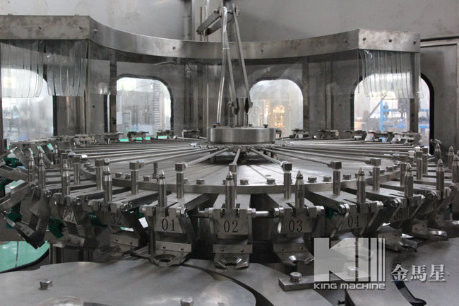 果汁灌裝機(jī)同時適用于果汁、茶飲料、功能飲料及果味奶飲料的灌裝。在溫度控制器的幫助下,該機(jī)器能夠進(jìn)行80-95度高溫?zé)峁嘌b。本設(shè)備采用瓶頸懸掛技術(shù),適用于各種瓶型,跟換瓶型只需調(diào)節(jié)傳送鏈的高度及出瓶玻璃即可,方便快捷。全機(jī)PLC控制變頻調(diào)速,自動化程度高,自動控制進(jìn)液,液位控制準(zhǔn)確,無滴漏。與物料接觸部分均為食品級304優(yōu)質(zhì)不銹鋼。是飲料廠家的優(yōu)選產(chǎn)品。