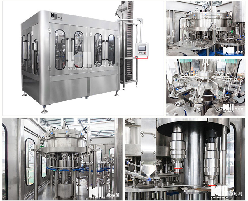 本設備主要用于含汽飲料灌裝,包含沖瓶灌裝和旋蓋三大主要功能。本設備實現全自動運行,能夠適應PET瓶含汽果汁、含汽礦泉水及可樂與雪碧等灌裝。瓶型適應性強,更換瓶型時操作簡單快捷。灌裝方案中采用了等壓灌裝原理,灌裝快速穩定,液位準確,含汽量足。與同類設備相比,本公司產品產量高,運行穩定安全,故障率低,自動化長度高,價格經濟實惠。全機采用優良可編程控制器(PLC)來控制設備的自動運行,送瓶系統由變頻器改變速度,更加穩定可靠。每個部分都有光電單元進行監測,所以更加自動化,操作更加便捷。在此基礎上,更換灌裝單元即可改變灌裝模式到低壓真空灌裝和等壓灌裝等。本設備是飲料企業的選擇。