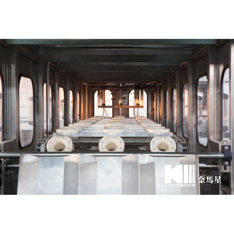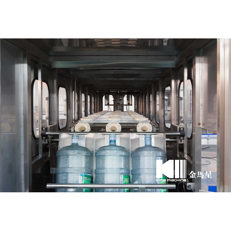 本設備集合了消毒、沖洗、灌裝和壓蓋,合四為一,能夠實現全自動桶裝水旋蓋。沖瓶機使用多種沖品液和消毒液,以保證獲得沖瓶和殺菌效果。消毒液可以循環使用,節省消耗。