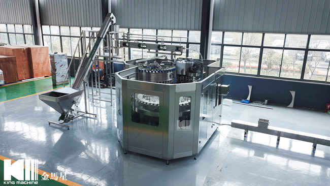 本機(jī)主要用于飲料的灌裝作業(yè)。本機(jī)將洗瓶、灌裝、封口三功能合在一個(gè)機(jī)體上,全過程實(shí)現(xiàn)自動化、適用于聚酯瓶、塑料瓶灌裝礦泉水、純凈水,加上溫控裝置還可以進(jìn)行熱灌裝。各部分的適用瓶型調(diào)整采用手柄轉(zhuǎn)動實(shí)現(xiàn),輕松自如,簡便快捷。灌裝方式采用了新型的微壓灌裝,使灌裝速度更快更穩(wěn)定,所以同規(guī)格的機(jī)器相比本機(jī)的產(chǎn)量更高,效益更大。本機(jī)采用了優(yōu)良的OMRON可編程控制器(PLC)控制機(jī)器的自動運(yùn)行,進(jìn)瓶鏈道采用變頻器調(diào)速,與主機(jī)變頻器的調(diào)速相互配合使進(jìn)瓶運(yùn)行更穩(wěn)定可靠。光電檢測各部件的運(yùn)行狀況,所以自動化程度高,操作簡便。在此基礎(chǔ)上,本機(jī)變更灌裝部分;可以形成低真空灌裝方式和等壓灌裝方式。低真空灌壓方式(Z型機(jī)),適用于玻璃瓶,灌裝酒類、醬油等物料,其封口方式可以選配鋁金屬防盜蓋和塑料蓋。等壓灌裝方式(Y型機(jī))適用于聚酯瓶,塑料瓶灌裝含汽飲料,是飲料生產(chǎn)廠家理想的優(yōu)選設(shè)備。