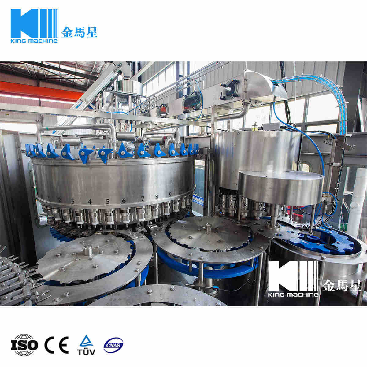飲用水灌裝機集沖洗、灌裝、旋蓋于一體,全過程自動化運行,主要適用礦泉水、純凈水等不含氣飲料的沖瓶、灌裝、封口連續作業。本機大部分電器系統零件均采用國外優良產品,所有與液料接觸的地方均采用優質的不銹鋼材料制作,主關鍵部件采用數控機床精密加工, 整機光電檢測各部件的運行狀況,無瓶不灌裝,無瓶不送蓋,自動化程度高,操作簡易,具有耐磨、穩定、故障率低等特點,產品質量處于行業前列,是新老飲料投資者的選擇。
