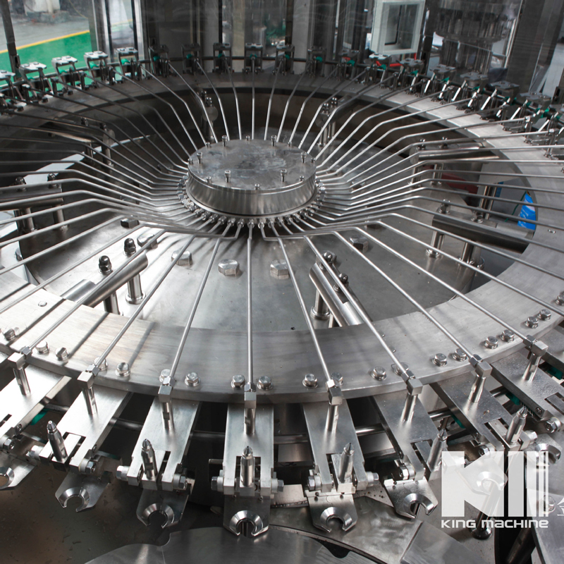 此設(shè)備主要應(yīng)用于灌裝飲料,包含沖瓶、灌裝和旋蓋三大功能。